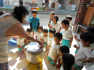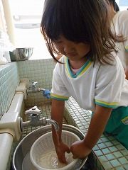 朝、登園してみんなで順番にお米を洗いました。