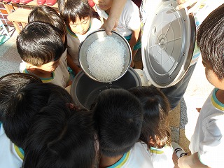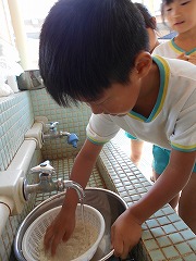 自分たちが洗い終えたお米を炊飯器に入れる様子です。