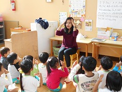 今日は、英語のステファニー先生が幼稚園に遊びに来てくれました。
