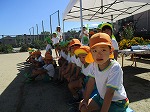 年長児のリレーを年中児が応援しています。大きい組さんの頑張る姿に、応援の声にも力が入ります。