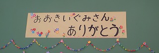 いつもやさしくしてくれた大きい組さん、リレーやドッジボールで元気に遊ぶかっこいい大きい組さんも、もうすぐ1年生。卒園の日が近づいてきました。大好きな大きい組さんとのおわかれ会をしました。