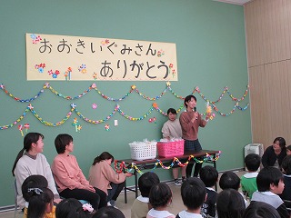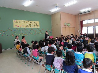 最後に大きい組さんのきれいな歌声を聞きながら、たくさんの思い出が浮かんできました。楽しかった幼稚園での思い出を胸に、小学校でも元気にがんばってね!