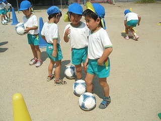 いよいよおまちかねのボール登場!!!みんなの顔も笑顔満点になりやる気マンマンです。