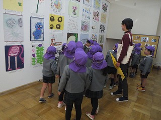 いろいろな幼稚園の子どもたちの作品を見て楽しんだり