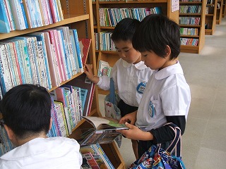 たくさんの本に大喜び。でも約束を守って静~かに選んでいましたよ。