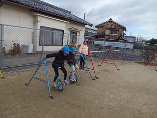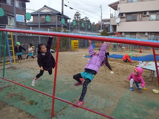 寒さ厳しい1月でしたが、子どもたちは、寒さに負けず、戸外でいろいろな遊びを