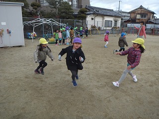 さすが5歳児です。寒いときでも、すぐに温かくなれる、子どもたちの大好きな遊びです。