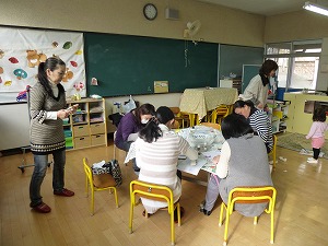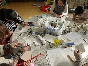 和気藹々とお話 しながらのとても楽しい雰囲気の中、うさぎやくま、ねこやキリンなどのかわいいマグネットが出来ました。
