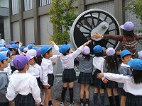 大きな汽車の車輪をみて、驚きました。大好きな電車も見ましたよ。