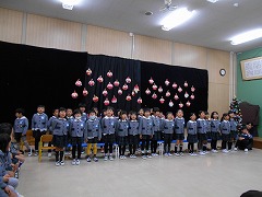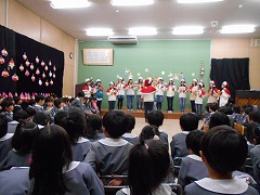 各学年ごとにクリスマスの歌と合奏を発表し合いました。