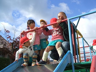「みてみてー。」「滑り台一緒にすべろう。」と話しかけたり追いかけっこを