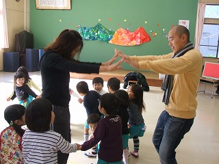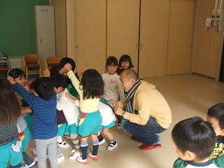 みんなで大きな輪になって、橋を作ってくれた先生に捕まらないように