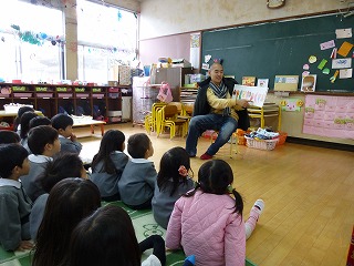 最後は英語で『はらぺこあおむし』の絵本を読んでもらいました。「りんごはアップルだよ」