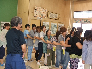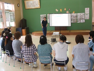 田辺消防署の消防隊員、救急救命士の方々に幼稚園にきていただき、PTAの方々と救急救命講習会を行いました。