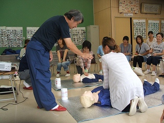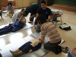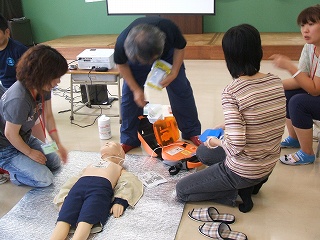 日常の子どもの発熱やケガの対応や、心肺蘇生法、AEDの使用手順などを教わりました。