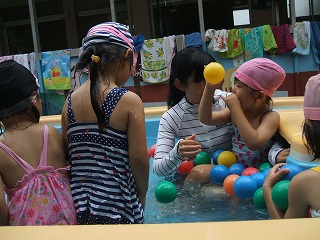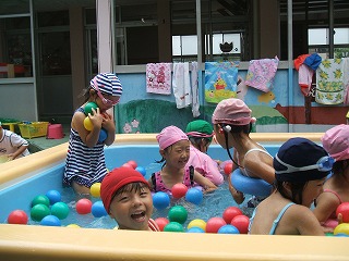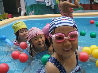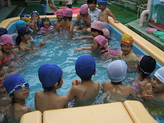 保育室の前にプールがあり、いつ入れるかと楽しみにしていた子ども達。