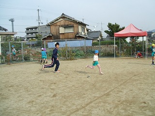 子ども達もお兄ちゃん先生やお姉ちゃん先生に遊んでもらうことが嬉しくて、甘えたり、幼稚園のことを知らせたりして、中学生との良い出会いとなりました。