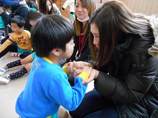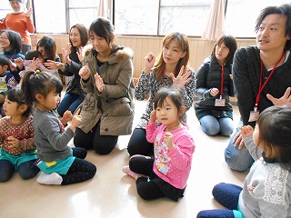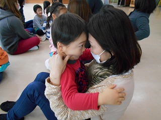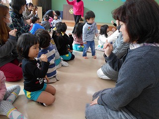 1年間繰り返し楽しんでいたわらべうた遊びをお家の人に見てもらい、