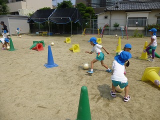 蹴るときのバランス、威力、コントロール、いろんな力がついてきていることを