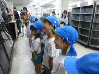 手紙が機械の中ですごいスピードでまわり、飛んでいき各地域にわけられます。