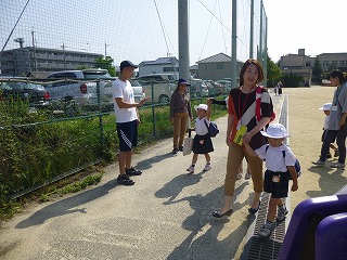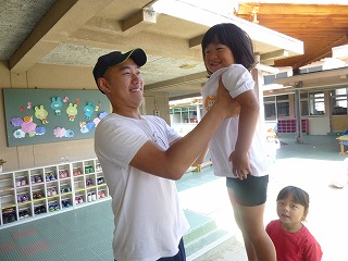 園庭で一緒に踊ったり