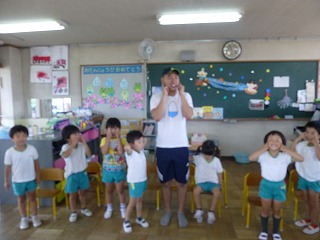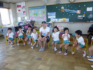 グットモーニング!と元気よく挨拶できる子、恥ずかしがってしまう子…いろいろな姿が見られました。