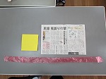 用意するものは…新聞紙 1枚(小さいサイズ)、折り紙 1枚、スズランテープ 1本