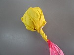 きゅっと押えたまま、折り紙に包んで…
