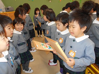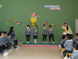 あと少しで、幼稚園の修了を迎える、すみれ組さんのお別れ会をしました。