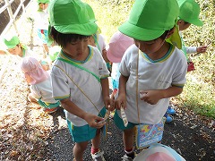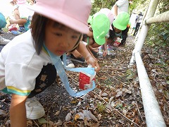 「あっここにどんぐりみーっけ」
