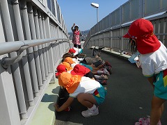 帰りみちに鉄橋から電車が通るのをみんなで寝転んでみました。