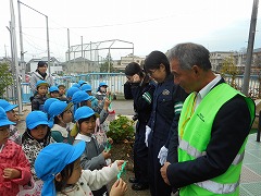 「おじいちゃん、おばあちゃんにかきました。よろしくおねがいします。」とみんなで手渡しました。 「みんなの心がこもった年賀状を必ず、届けますね。」と言ってくださり、嬉しそうでした。