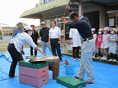 迫力あるもちつきに、見入っていた子どもたちです。