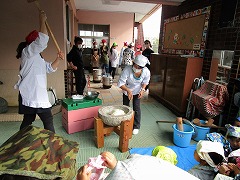 地域の方やPTA本部さんにもご協力頂き、もちつきのスタート!