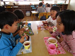 などなど、お友達や先生と一緒に会話を楽しみながら食べていましたよ。