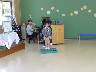 すみれ組の誕生児は、園長先生とお母さんから、ゆりかごのプレゼントです。