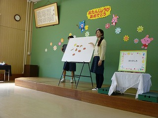 4月24日、4歳児ひまわり組、5歳児すみれ組の4月生まれの誕生日会を