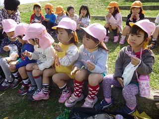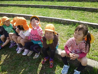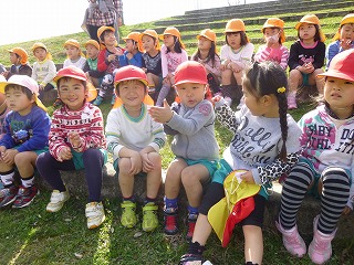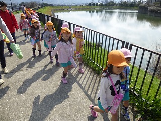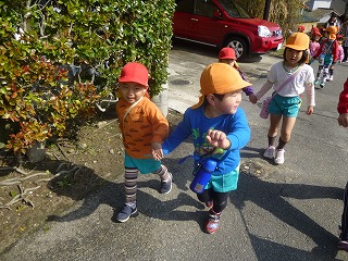 年長さんの卒園後、年中と年少が手をつないで向かいます。