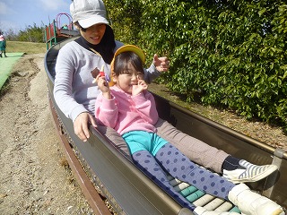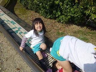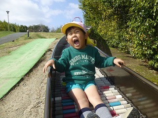 「わーい!」「やっほー!」と滑り台からすべってくる顔がとっても楽しそうです。