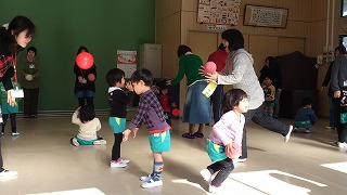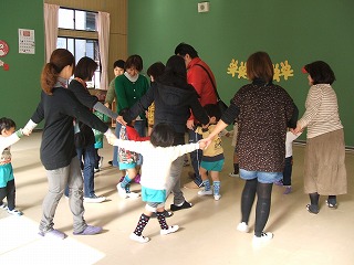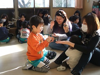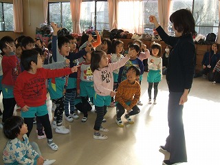 平成25年1月24日は3歳児、25日は4歳児が、わらべうた遊びの岡田先生に
