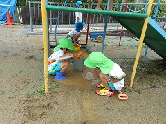 これからも、水たまり、雨だれ、どろんこなど子どもたちと雨をおおいに楽しもうと思っています。