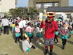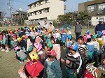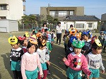そして、自分で作った鬼の面をつけ、園庭に色とりどりのかわいらしい子鬼達が集まりました。