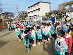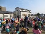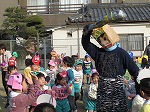 待ってましたと向かって行く子、怖くて先生の後ろに隠れる子と姿は様々ですが、みんなで「おにはーそとー!ふくはーうち!」と豆をまきました。
