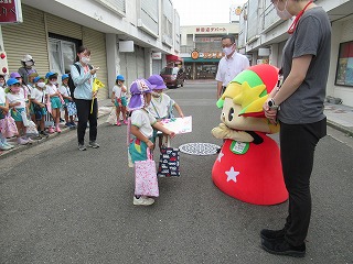 5歳児の子ども達が、近鉄新田辺駅の東側にある「キララ商店街」に出かけました。5歳児は、少し遠くまでお出かけです♪