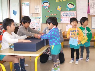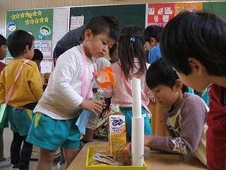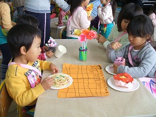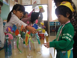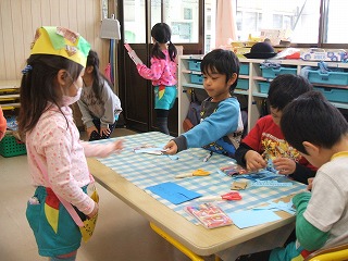 年少児、年中児は、素敵な帽子や花を買ったり、ゲームのやり方を教えてもらったりして、楽しんでいました。