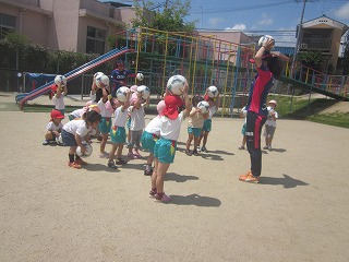 京都パープルサンガつながり隊の方が「体を意欲的に動かし、楽しんで遊べるための」指導に来てくれました。