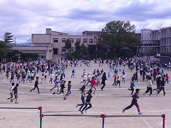 「自分のペースでいいので、最後まで歩かずに走り続けましょう!」という小学校の先生の声に励まされ、自分のペースで走り続ける子ども達。最後の合図まで走りきった時には、「やった~!」と満足気な表情を見せていました。諦めずに最後まで頑張る力が育ってきています。