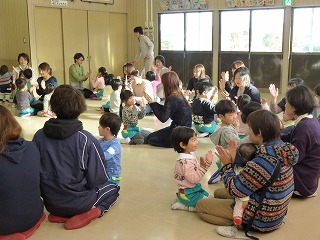 おうちの方と一緒にわらべうた遊びに参加できるとあって、子どもたちも嬉しそうに参加していました。