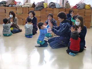 おうちの方と楽しくふれあいながら わらべうたあそびの時間を過ごすことができました。