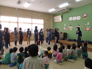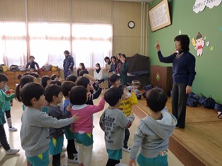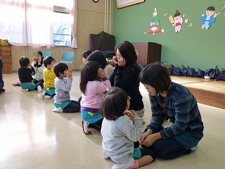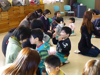 寒さが厳しくなってきたこの日、わらべうた遊びの親子参観がありました。